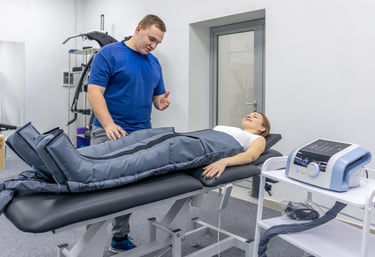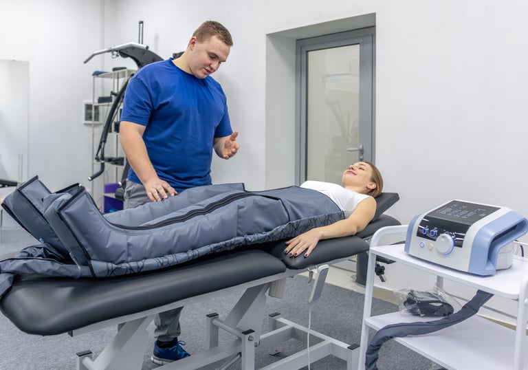 Terapia de compresión que estimula el sistema circulatorio y linfático, ayudando a reducir la inflamación, mejorar la circulación y favorecer la recuperación muscular.